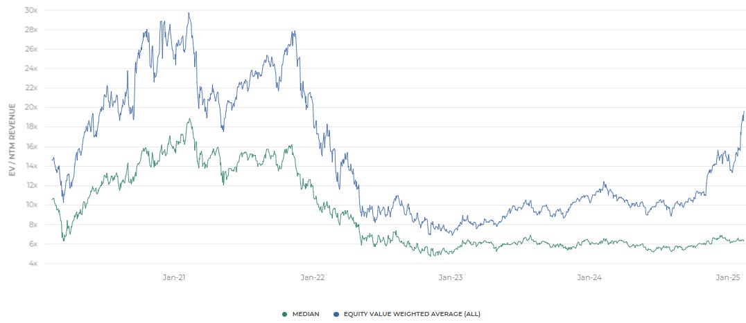 Top 20 EV (Enterprise Value) / NTM Revenue Multiples (as of Feb-14-25)